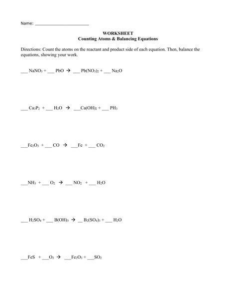 Counting Atoms and Balancing Equations Worksheet Answer Key